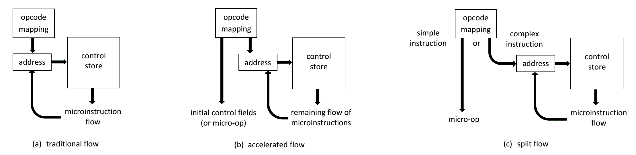 Similar accelerated flow approaches are described by R.L. Harris and R.W. Horst of Tandem in US Patent 4,574,344, "Entry Control Store for Enhanced CPU Pipeline Performance," 1986, and by J.C. Rhodes, et al., of IBM in US Patent 4,685,080, "Microword Generation Mechanism Utilizing Separate Programmable Logic Arrays for First and Second Microwords," 1987.